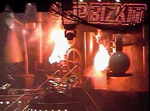 Limp Bizkit came on and all I can say is "yawn!" They retread and rehash the same old ground that has been done before (and better, though they're quite decent at what they do) combining rap with thrash. The biggest highlight of their show was when the sound failed and the audience was forced to listen to their own ambient sounds... shades of John Cage's 4:33! Seriously, the biggest highlight was when they launched into a bunch of covers, including snippets of Sweet Child of Mine, Smells Like Teen Spirit, Master of Puppets, and Faith. They had an elaborate machinery-based set with moving gears with some cool pyrotechnics.