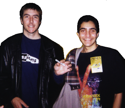 It was fun to meet the band again. This time we had a bit more time to talk, though Les wasn't in the best of moods. The new Sausage album won't be coming out for a long time. The CD+ is almost done will be out sometime January. A www page to support this release should be out in conjunction. Ler fiddling with the dials on Conan O'Brian was natural. Thanks to David Lefkowitz and Trouz for the passes.