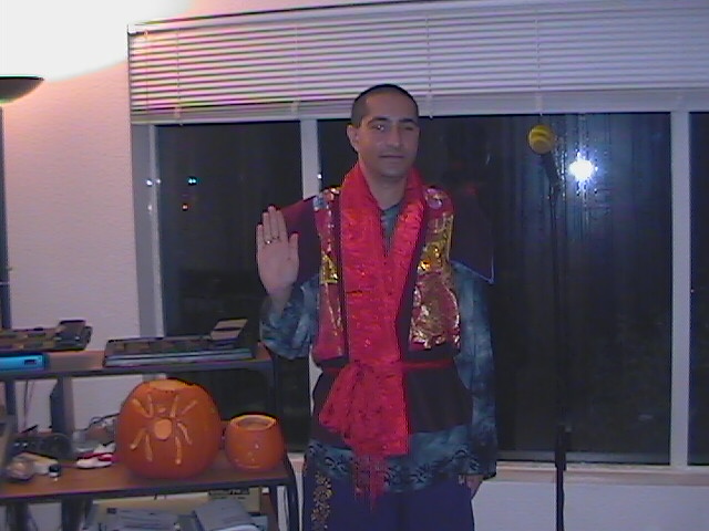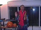 This Halloween, I dressed up in a combination of a Tibetan Monk jacket, Thailand sarong-like traditional pants, and an Indian traditional shirt that I had acquired from my trip to South Asia. Mali went as a clown. We also had some fun carving pumpkins.