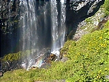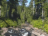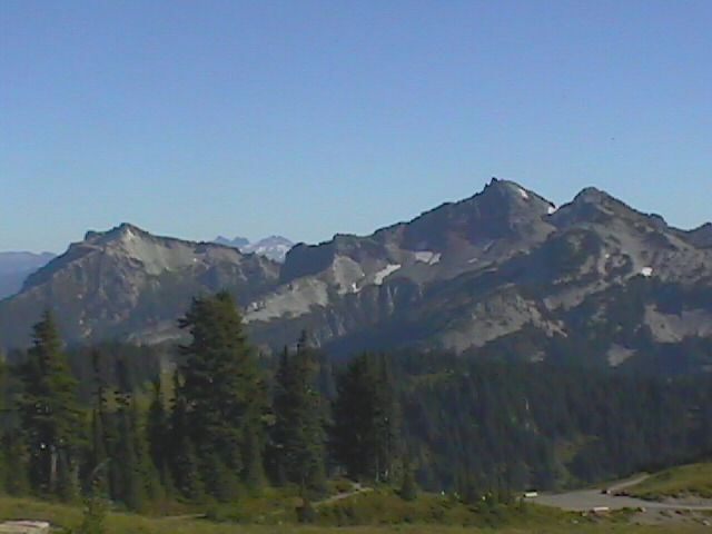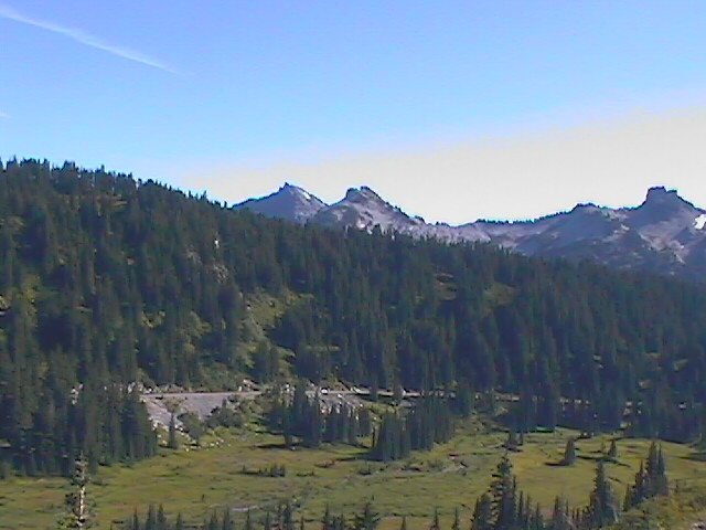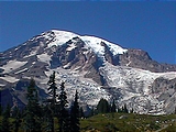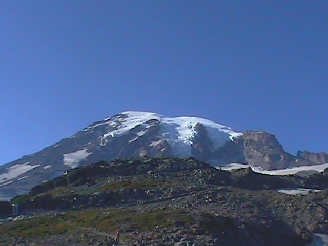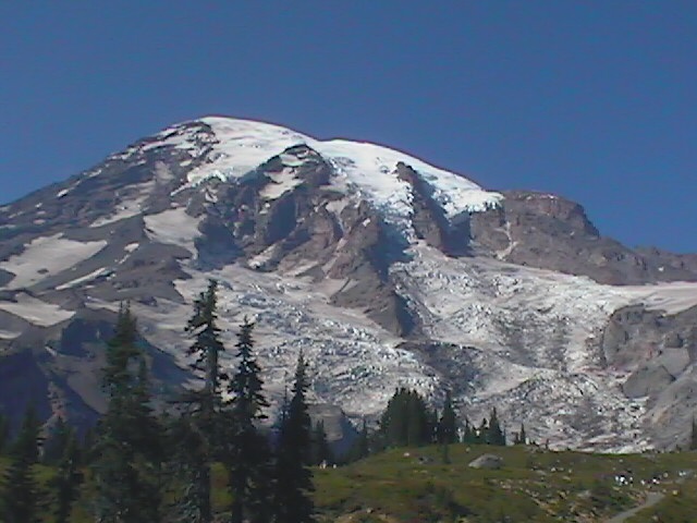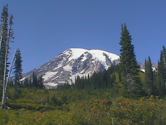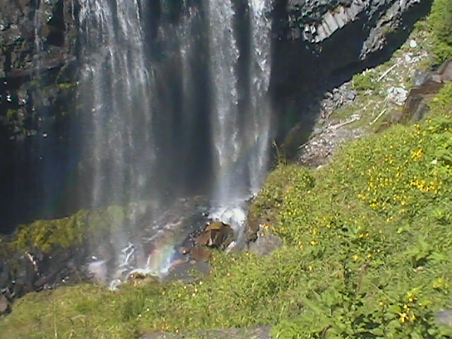 I finally made it down to Mount Rainier National Park to obtain a feel for the majestic peak, the third largest in the lower 48 United States (after Mount Whitney (California) and Mount Harvard (Colorado)), and do a bit of hiking. It was a beautiful Saturday afternoon when we drove through the Nisqually entrance (south of the park). We stopped for a few minutes to get a view of the Narada falls (note the rainbow in the picture above) and proceded to the crowded Paradise parking lot.