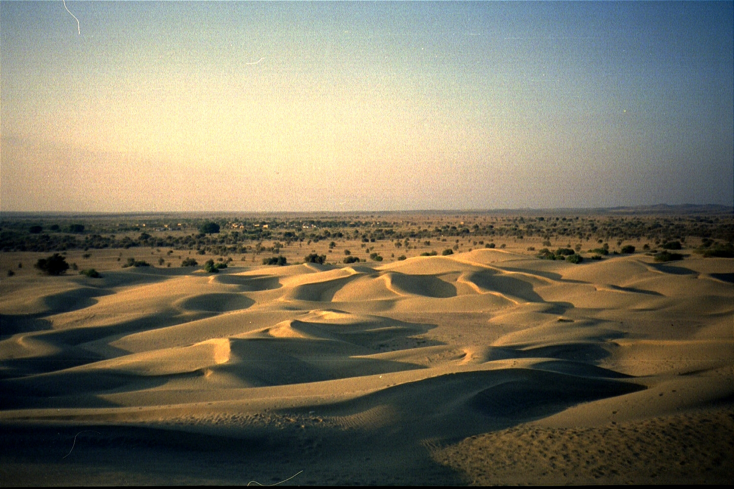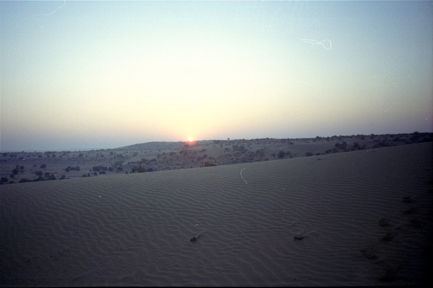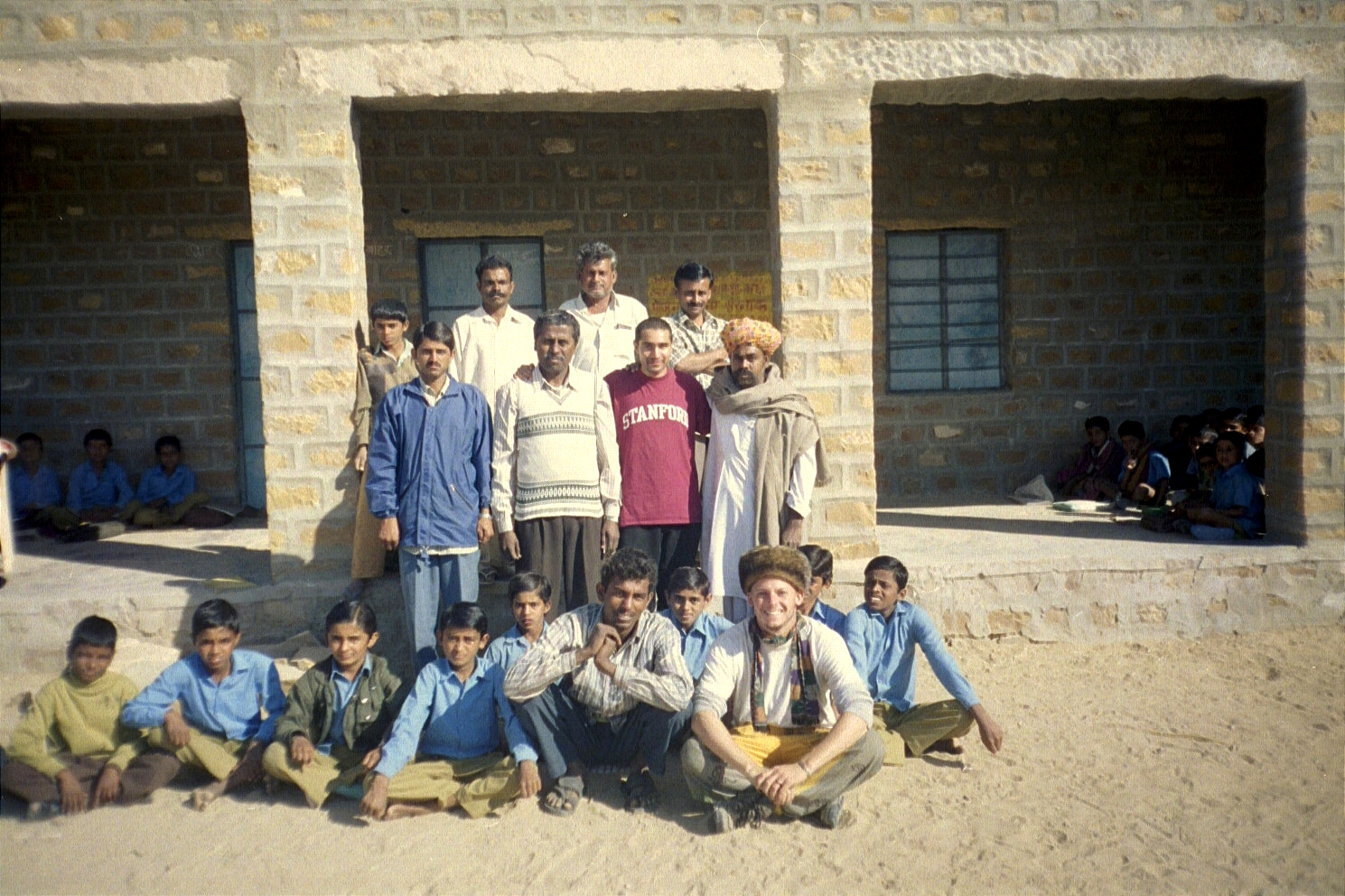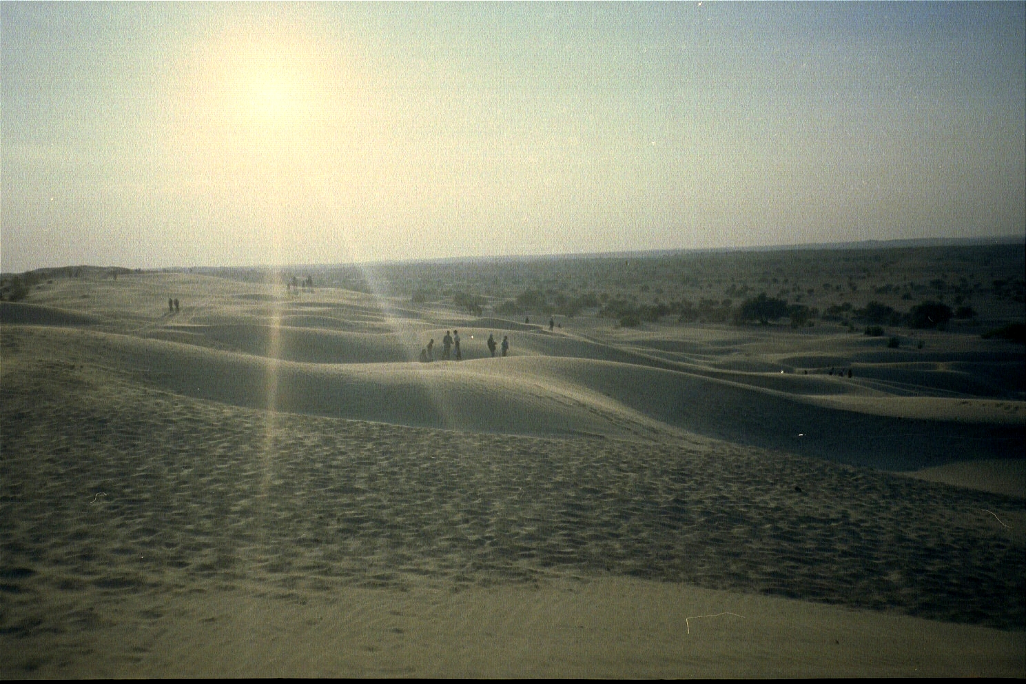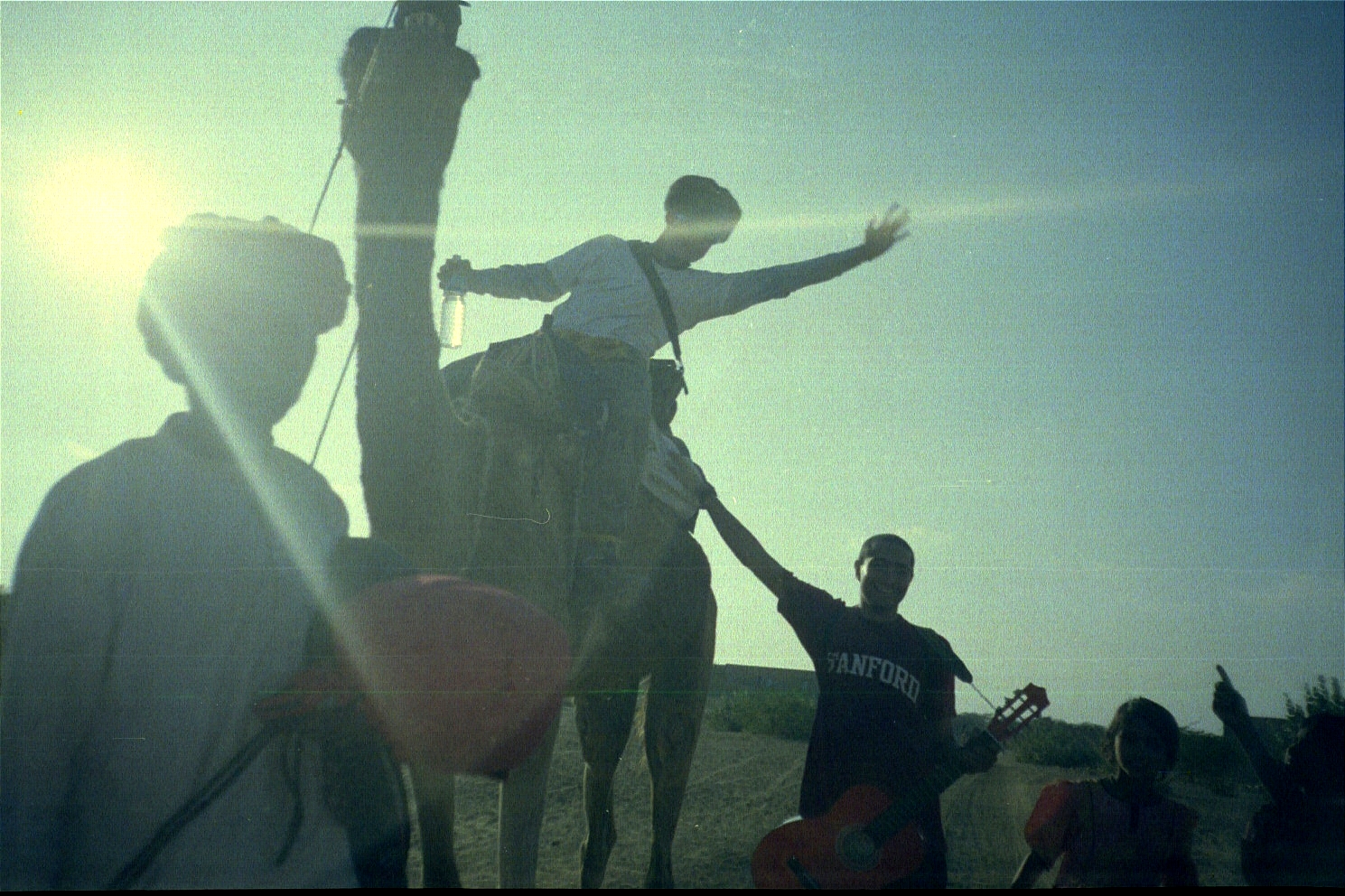 January 1. We finally arrived in Jaisalmer in the morning and by afternoon, we were on the edge of the Thar desert in a little village called Khuri. The Sarpanch (or head) of the village was Bhagwan Singh and after a lot of negotiation, we decided to rent a four-wheel drive jeep that would take us out into the desert far from civilisation. Because of the nature of the trip, the jeep had to be sent back to Jaisalmer to get its gas tanks filled, and while we waited, Bhagwan Singh arranged for a camel ride to the local sand dunes for Jason. I walked along with my guitar since I consider riding animals to be objectification also and, for the nth time, I am against the objectification of animals). The camel was not happy at all (would you be?), but Jason survived the trip.