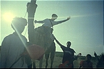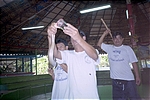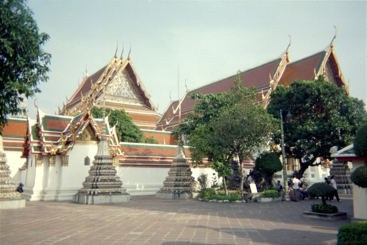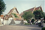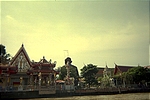 After Thonburi, we saw more temples and finally decided to get dropped off at some random spot (we were trying to get to "downtown Bangkok" at this point). We saw some kids playing hackey sack and joined them; they were very happy to play with us. (At this point I should mention that it was a totally new experience for us to find the Thai people so friendly. At the end of the trip, I was convinced that they are the friendliest people I've ever met and that Thailand is one of the rare places where diversity is valued.) We got our asses kicked at the game and from there, after declining an offer to snort some unknown substance, we headed down the road to Wat Pho, one of the grandest Buddhist temples in Thailand. This is the oldest and largest temple in Bangkok, and features the largest reclining Buddha (symbolising his attainment of Nirvana) and the largest collection of Buddha images in Thailand.