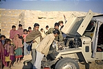 Jump starting the car was non-trivial. We were on sand and pushing the jeep was out of the question. So we made a little path out of shrubs to give tires some traction and pushed the jeep just a couple of feet or so higher (this took about half-hour and we were helped by about twenty kids). After a couple of tries, the jeep started to the delight of everyone! That was the first of the problems we solved that day.