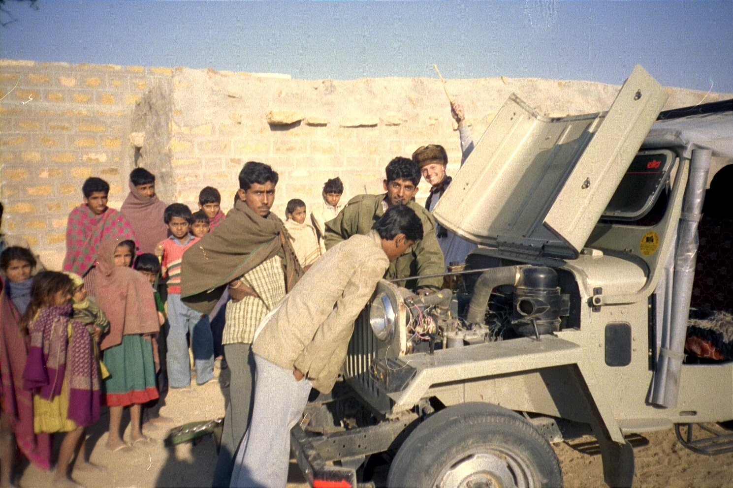 We then had our breakfast and kept driving towards the Pakistani border. We passed through the first village where people greeted us like they had never seen other humans (or a car) before. We realised there was an alternator problem with the jeep (a wooden block that had been used as a wedge to keep it from shaking too much had come loose).