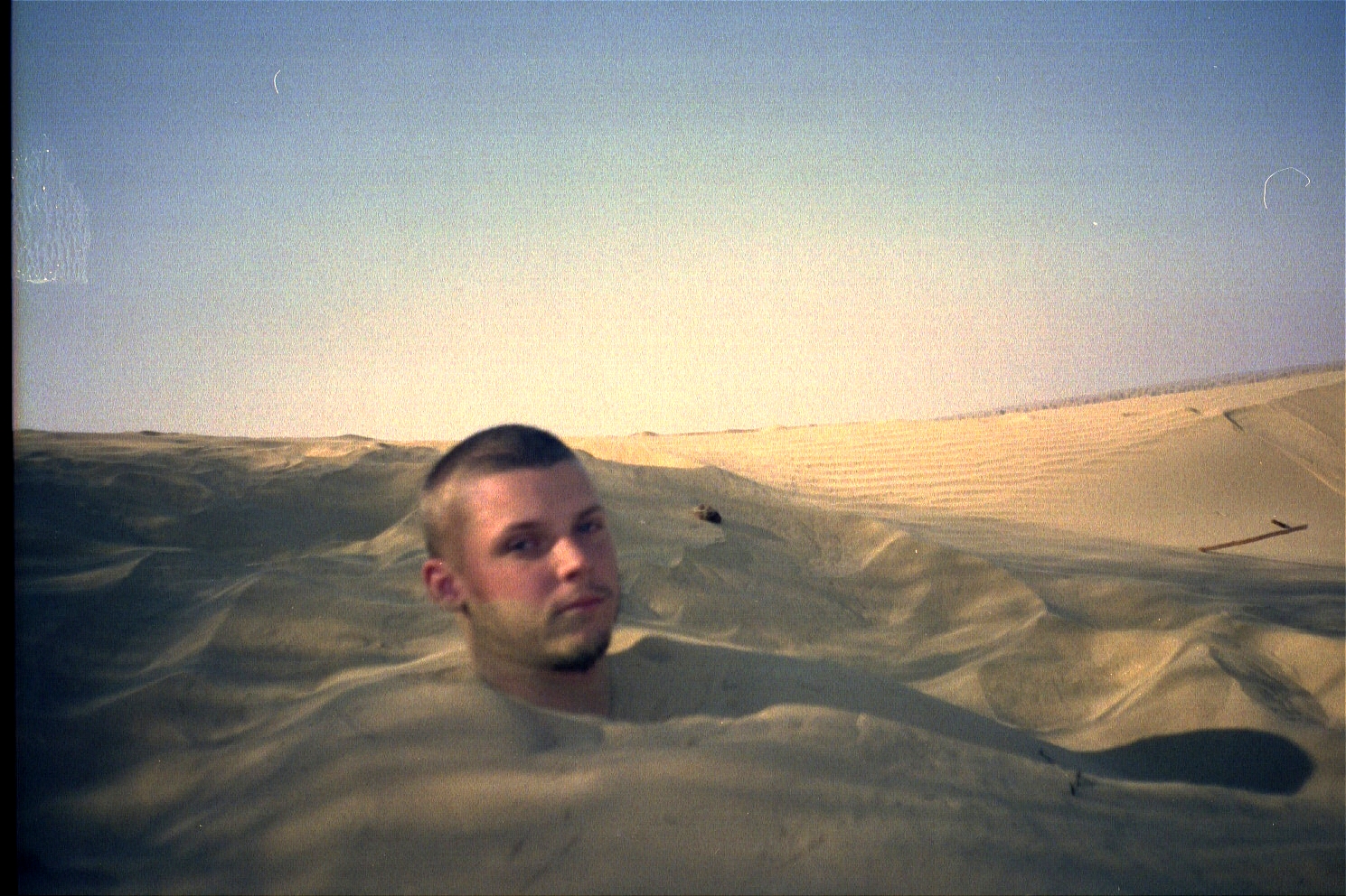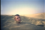 We had lunch at some random (notice the trend here?) location, which was probably about 160 kilometres/100 miles away from our original location. We climbed up the nearby sand dunes and again took in the peace of the surroundings. It was amazing to me how quiet and serene everything was---I had never experienced anything like it before. Even at Everest Base Camp, which was extremely remote, I didn't experience such solitude. Goobie, er, Jason, and I took this in and philosophised about life while I buried him in the sand.