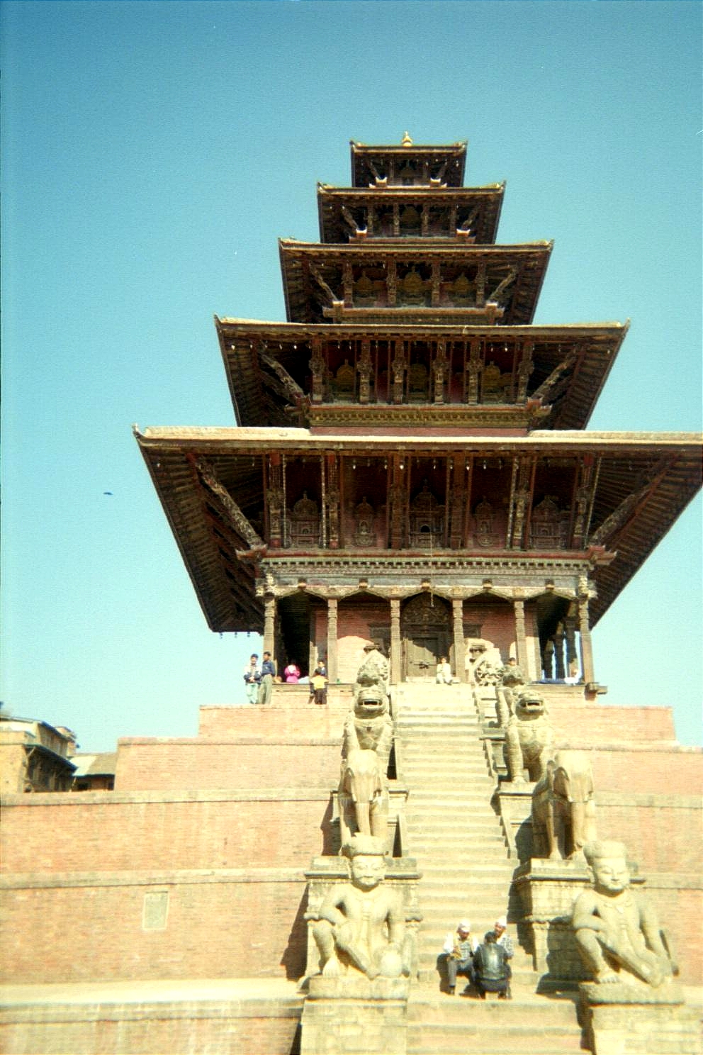 We found a taxi for the day operated by this really cool guy Nobin who was a huge Bob Marley fan (he stopped and even bought tapes so we could listen to them). We set off to the Durbar Square in Bhaktapur and went to a variety of temples, including the Pashupatinath Temple (not to be confused with the main shrine in Katmandu) which depicts erotic carvings on the roof struts (Chatu Bramha Mahabihar), the Bhairabnath Temple, and the Nyatapola Temple (the highest temple in the whole Katmandu valley).