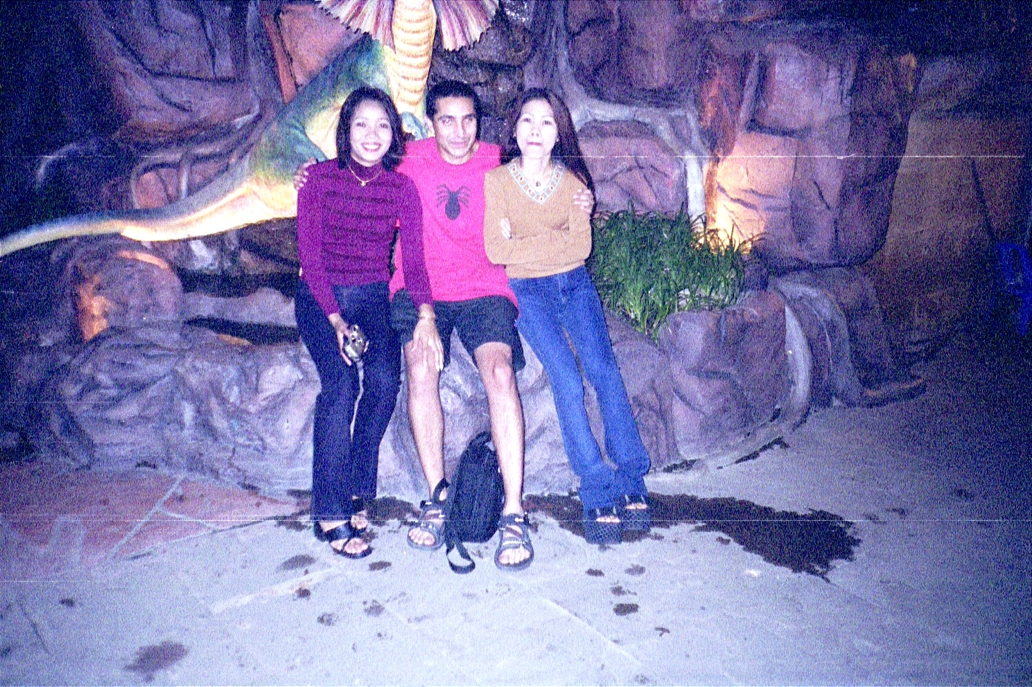 January 20. The next day, after breakfast, we headed to Phuket and the Phi Phi Islands. We were on standby for the flight to Phuket, but we made it and by 4p, we had checked in at the Kata Garden Resort and were wandering around the Kata beach in Phuket. After sampling some of the local Thai cuisine, we headed out to Patong beach, which is even more hedonistic than Bangkok! We saw a transvestite-based show in one of the bars which was amusing in a crude way, and went bar hopping. One of the bars we went to had excellent music, playing a lot of 70s rock and metal, including Iron Maiden, Deep Purple, and Rainbow. We met this random guy named Troy, a diver, who was celebrating his birthday who hung out with us for a bit. We also got in some dancing at the local discos. P'Ram drank more than she should have which led to an heated argument between her and Mali, but we finally made up and made it to the hotel.
