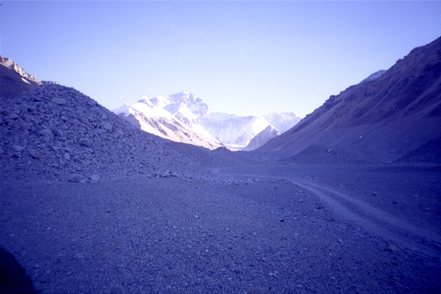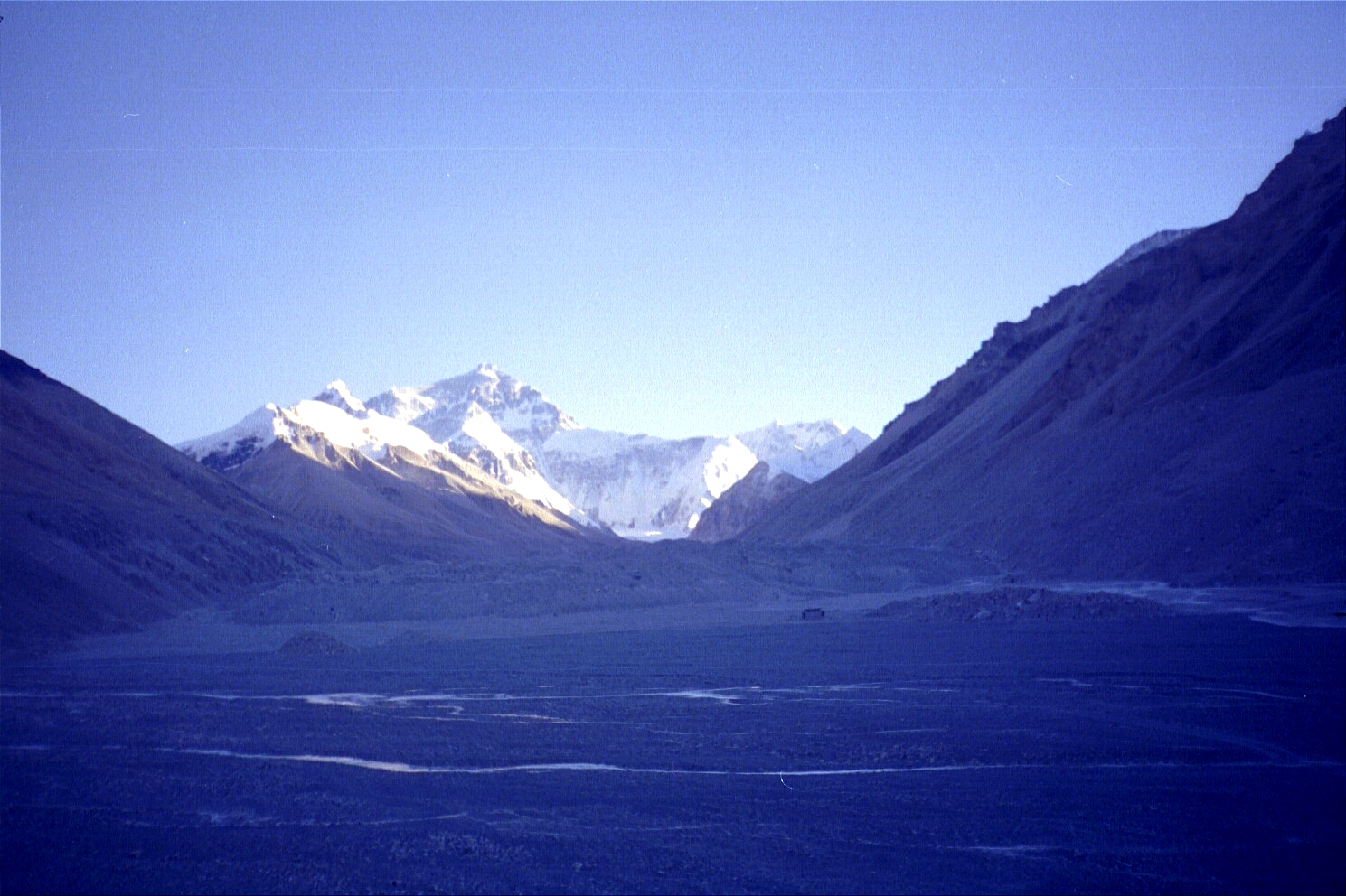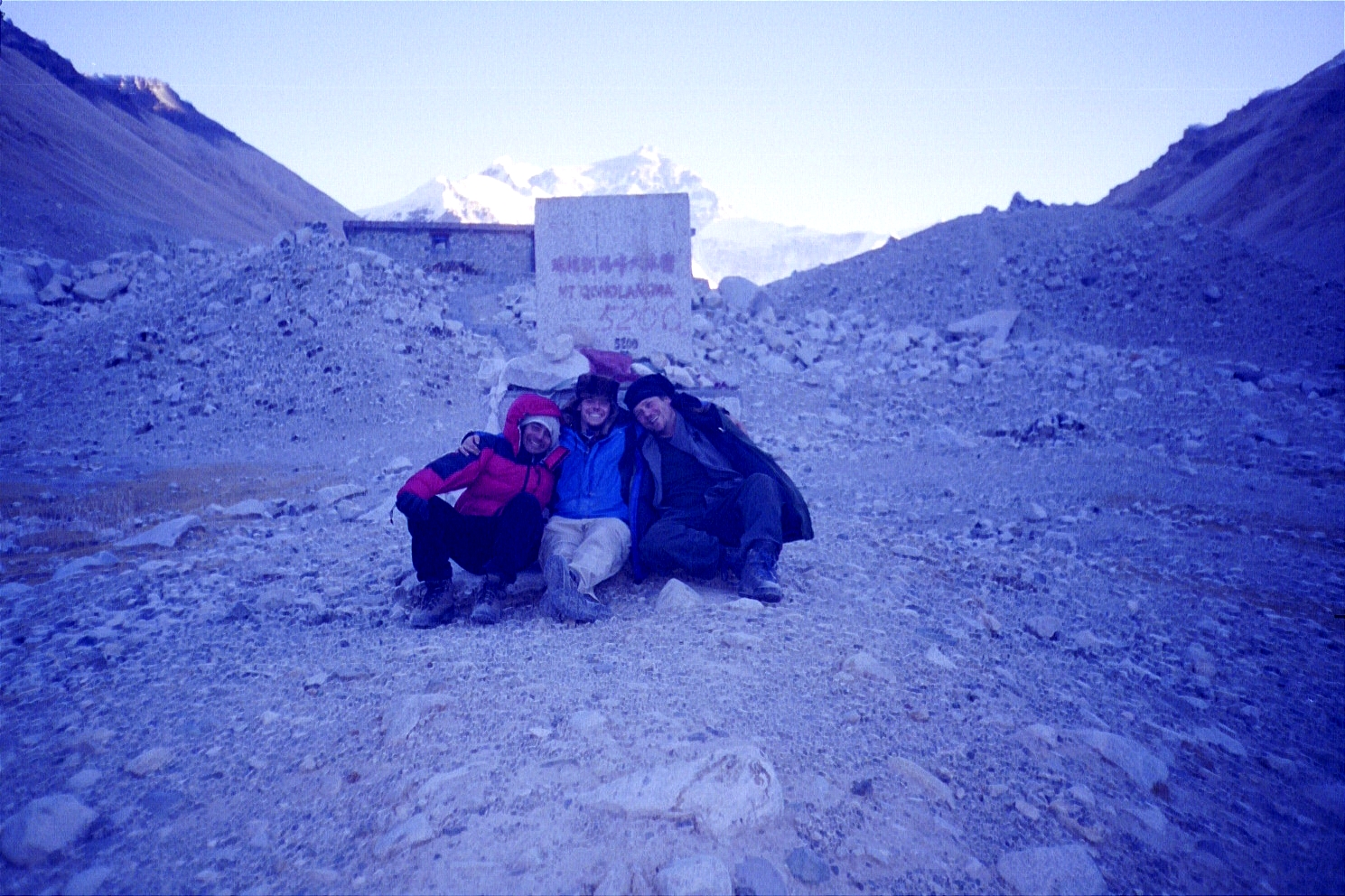 By the time we hit a sheet of ice (on a ridge) that the car couldn't go through, it was approximately around 4p. We then decided to walk the next ten or so miles (starting at an elevation of 5000 metres/16500 feet) to the base camp marker. The sun was out and it was fairly decent going, but the altitude was definitely taking its toll (especially since we were going all out to make it before the sunset). The view of Everest was a great motivator! Finally, we reached the base camp marker at 5200 metres/17160 feet around 730p, exhausted and exhilarated.