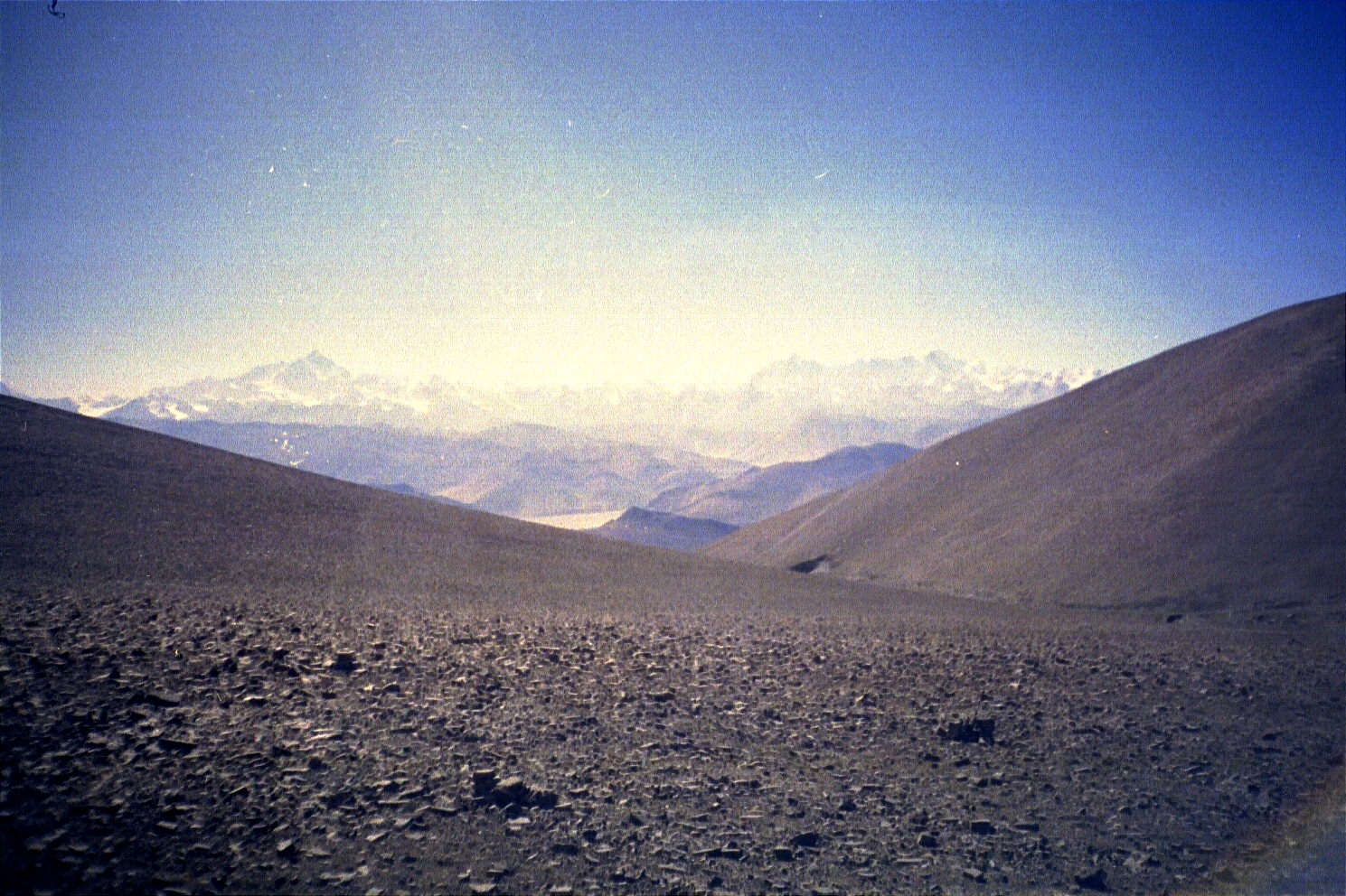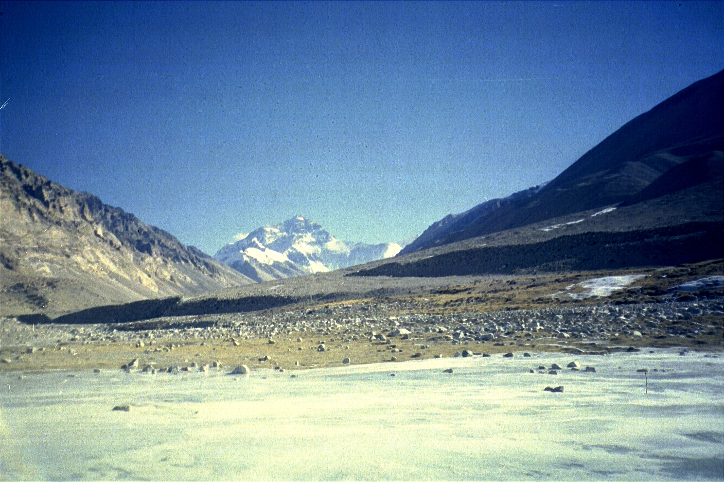 After tossing some rocks to break the ice, we then pressed on to Everest Base Camp. Our original plan was to spend some time trekking up, spending a couple of nights in the Rongphu Monastery, and exploring the surrounding area. When we went into Xegar to get our permits, we learnt that it was so cold up there (-20 degrees celsius) that the monks had come down and that the monastery was closed. We then decided (against better judgement) to drive up as far as possible and trek the remaining amount up to base camp and come back the same evening. We were the only ones on the road from Xegar, and we were the only ones attempting to trek to base camp that day. We went over the Geu-la pass (5170 metres/17061 feet) and made our way towards base camp. As we crossed the pass, the views on either side--one of the Zombuk and Dzaka valleys, and one of the Himalayas, including Everest--were breathtaking.